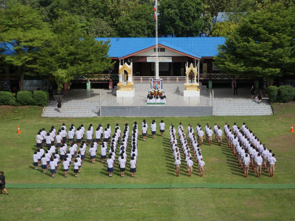 ทั้งนี้ โรงเรียนได้ร่วมกันแปลอักษรย่อ “สก” ซึ่งเป็น พระนามาภิไธยย่อ ของ สมเด็จพระนางเจ้าสิริกิติ์ พระบรมราชินีนาถ พระบรมราชชนนีพันปีหลวง เพื่อแสดงออกถึงความจงรักภักดีและน้อมรำลึกในพระมหากรุณาธิคุณตราบนิรันดร์