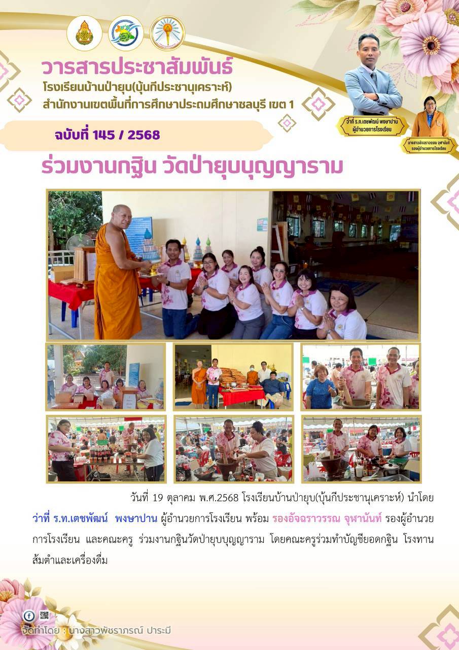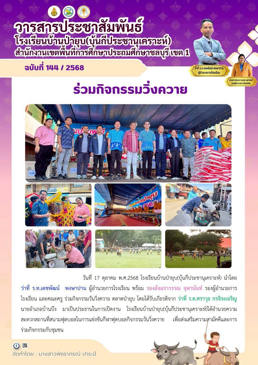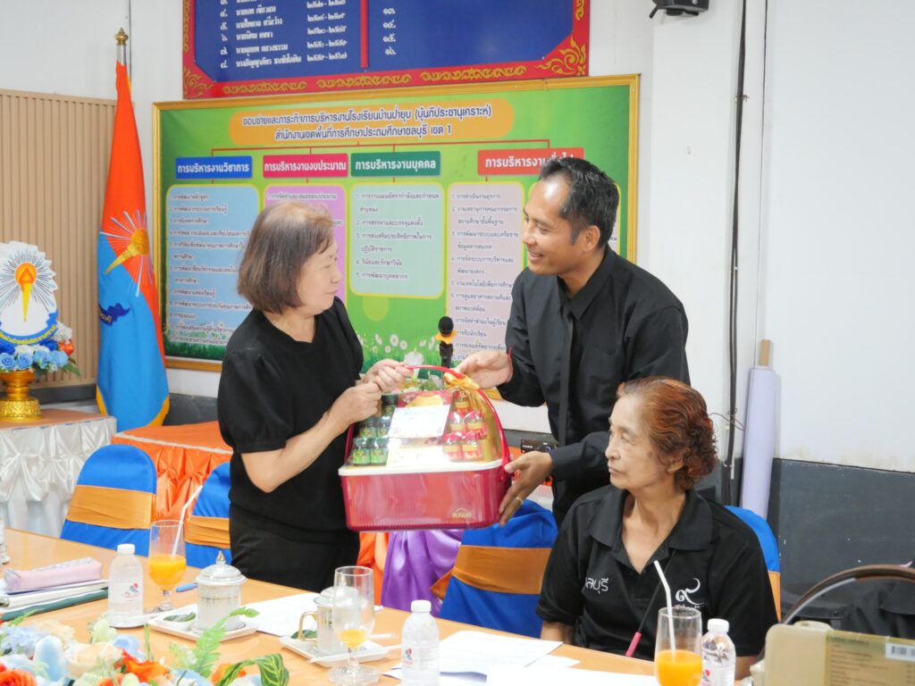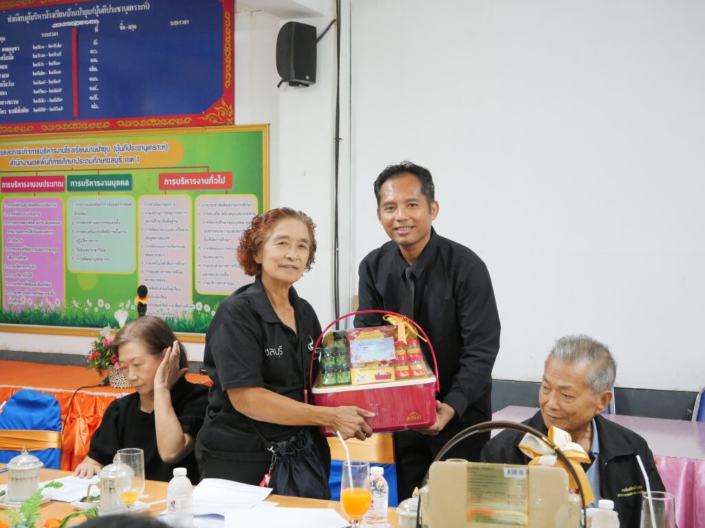 ในการนี้ คณะกรรมการสถานศึกษาทุกท่านได้ร่วมมอบเงินสนับสนุนเพื่อการจัดกิจกรรมวันเด็ก สะท้อนถึงความร่วมมือและการมีส่วนร่วมในการพัฒนาคุณภาพผู้เรียนและสถานศึกษาอย่างเข้มแข็ง ทั้งนี้ ว่าที่ ร.ท.เตชพัฒน์ พงษาปาน ผู้อำนวยการโรงเรียนบ้านป่ายุบ (บุ้นกีประชานุเคราะห์) ได้มอบกระเชาสวัสดีปีใหม่แก่คณะกรรมการสถานศึกษา เนื่องในวาระเทศกาลปีใหม่ เพื่อแสดงความขอบคุณและสร้างความสัมพันธ์อันดีระหว่างโรงเรียนและชุมชน