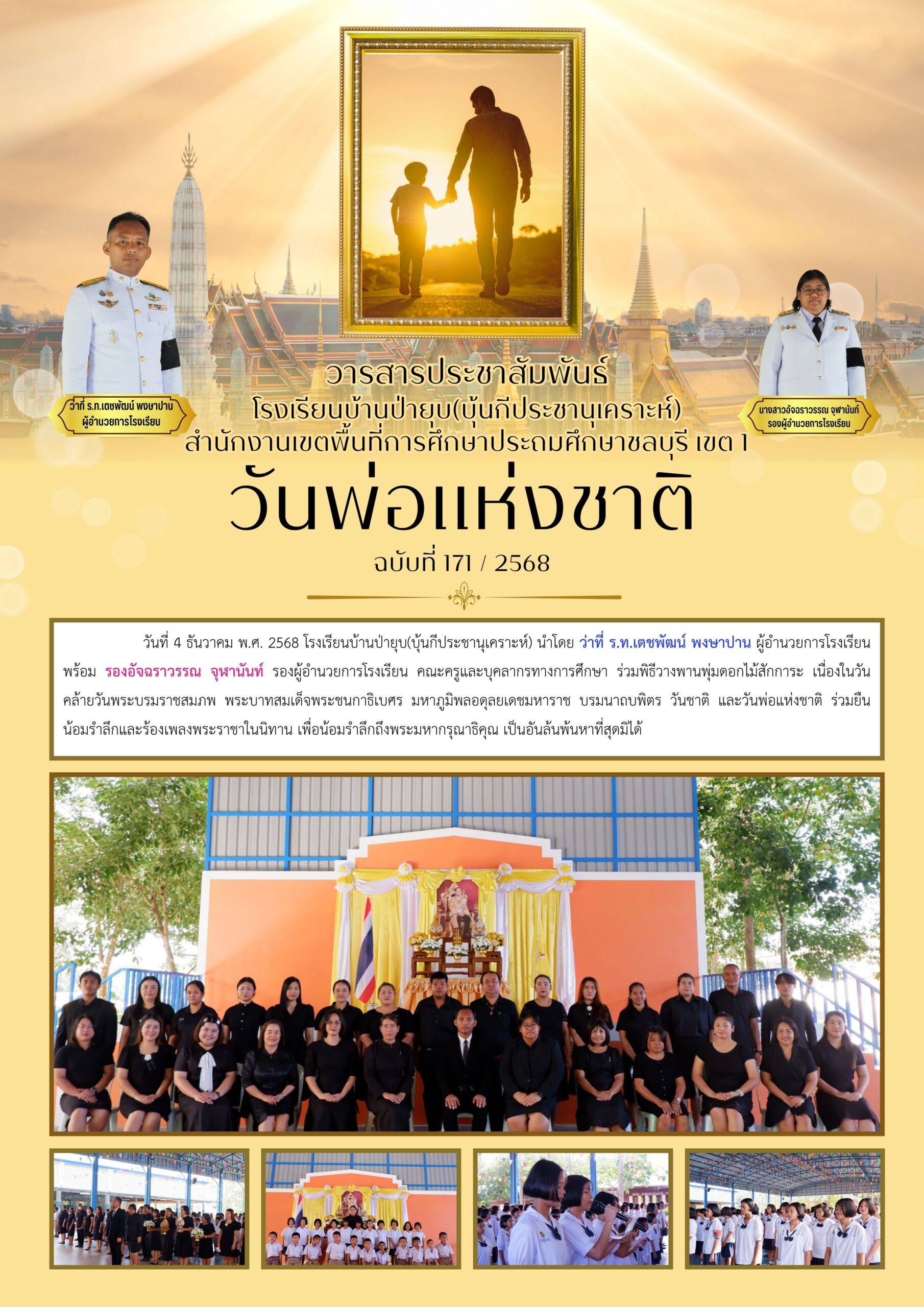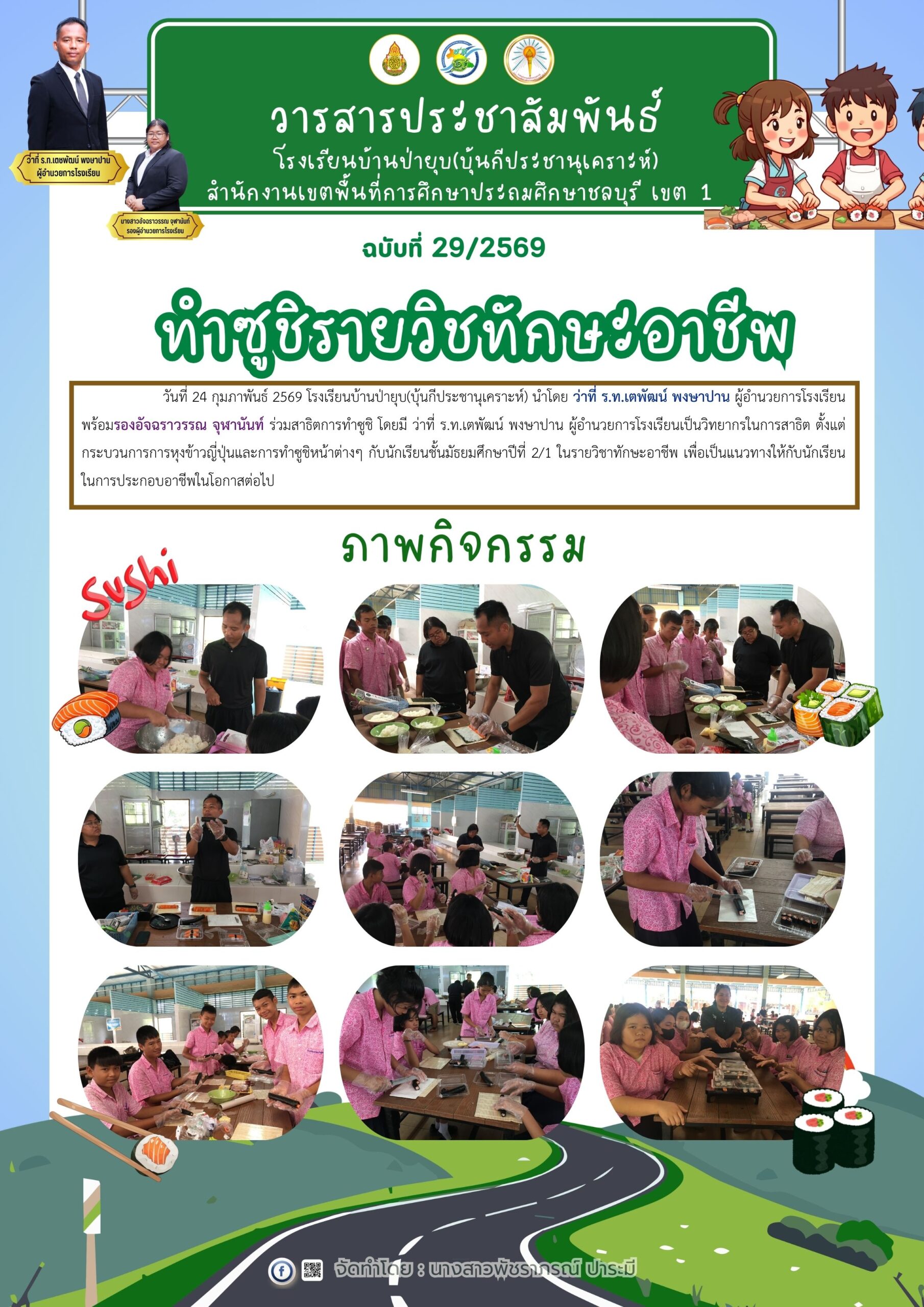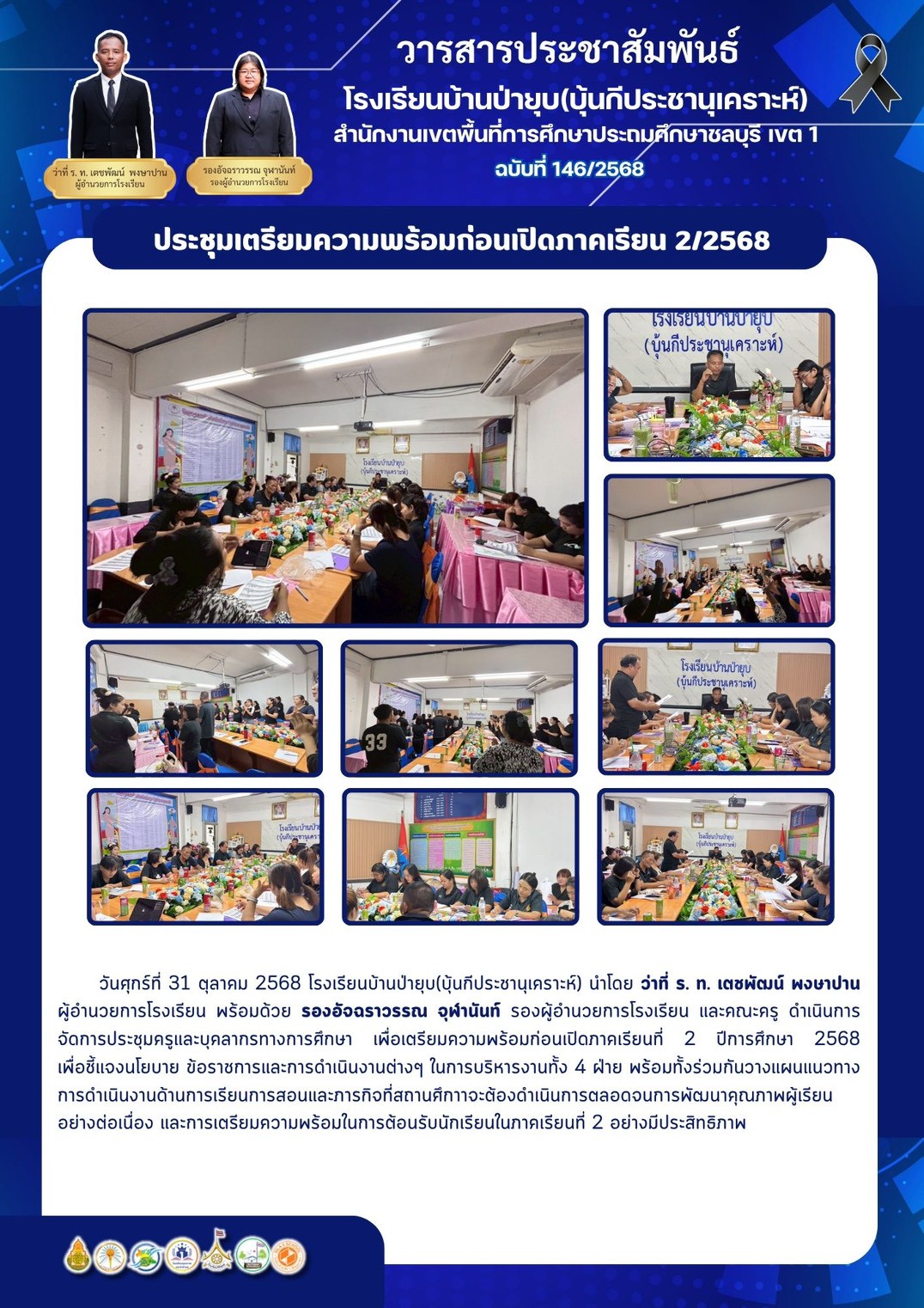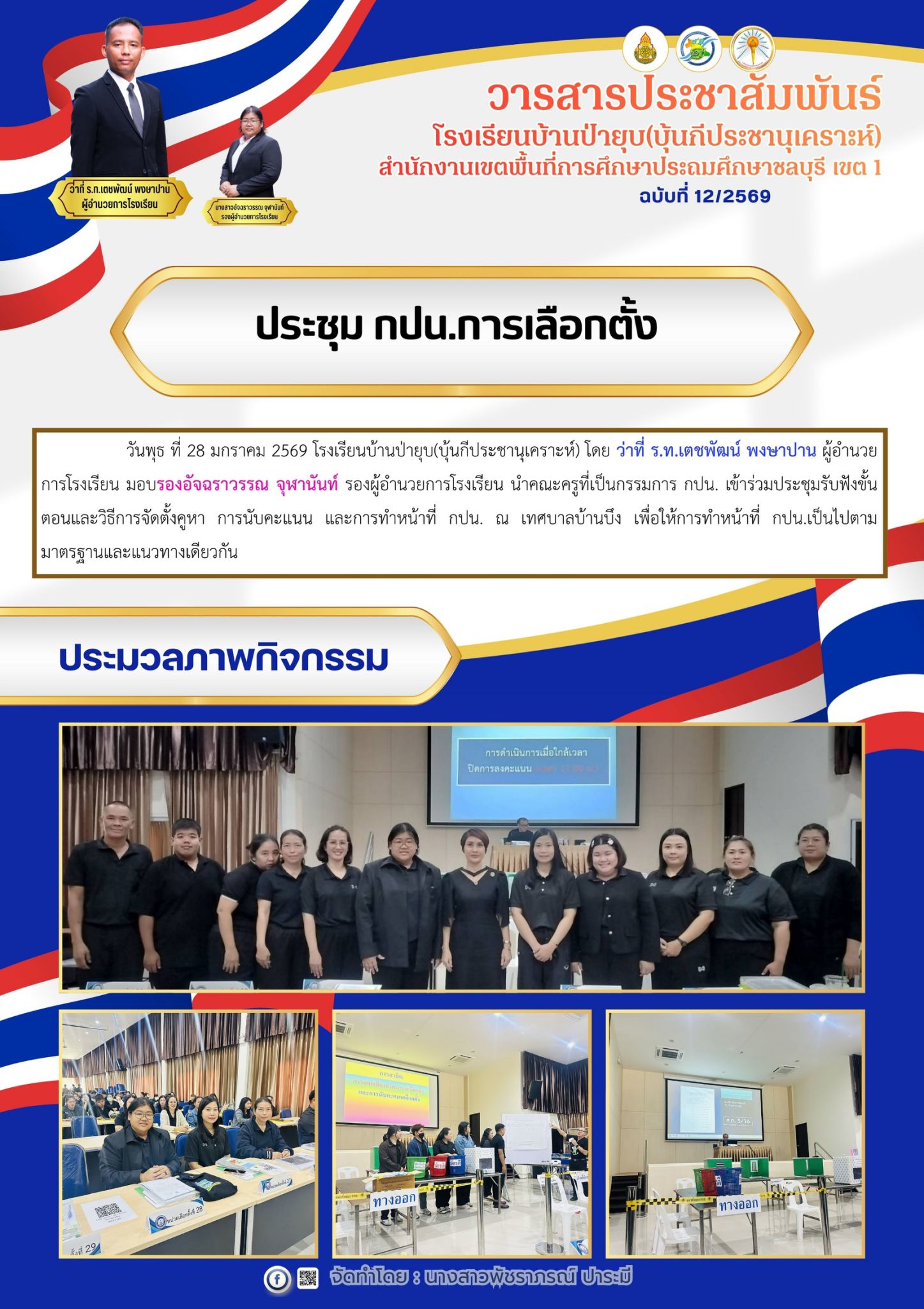 ในการนี้ คณะกรรมการสถานศึกษาทุกท่านได้ร่วมมอบเงินสนับสนุนเพื่อการจัดกิจกรรมวันเด็ก สะท้อนถึงความร่วมมือและการมีส่วนร่วมในการพัฒนาคุณภาพผู้เรียนและสถานศึกษาอย่างเข้มแข็ง ทั้งนี้ ว่าที่ ร.ท.เตชพัฒน์ พงษาปาน ผู้อำนวยการโรงเรียนบ้านป่ายุบ (บุ้นกีประชานุเคราะห์) ได้มอบกระเชาสวัสดีปีใหม่แก่คณะกรรมการสถานศึกษา เนื่องในวาระเทศกาลปีใหม่ เพื่อแสดงความขอบคุณและสร้างความสัมพันธ์อันดีระหว่างโรงเรียนและชุมชน